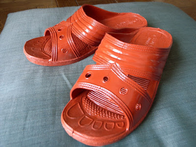 そしてベランダ用にサンダルも買いました。我が家のベランダには屋根がないため、雨ざらしでも大丈夫で、かつ履くのが楽なものを探していました。これぞ時代を越えた(便所の)スタンダード。こういうものは吉祥寺のロヂャースで売っているかもしれないと思ったら、本当に売っていました。368円でした。
