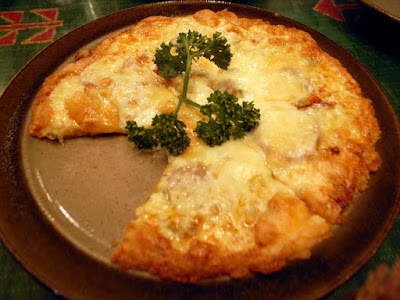 そしてこちらも名物の自家製ピザ。生地から作るそうです。チーズたっぷりで他では食べたことがないおいしさです。タバスコがよくあいました。