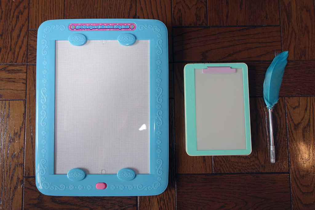 たとえばトレース台にずらして重ねたり、漫画や雑誌の切り抜きをお手本シートにしたりと、工夫次第でいろんな絵が描けそうです。遊んでいるうちに絵が上手になるとうれしいなあ。