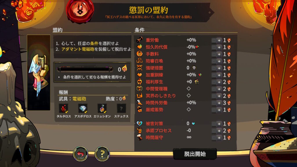 HADESは周回プレイを前提としたゲームであるとはいえ、1プレイで得られる成長度はかなり渋めに抑えられています。