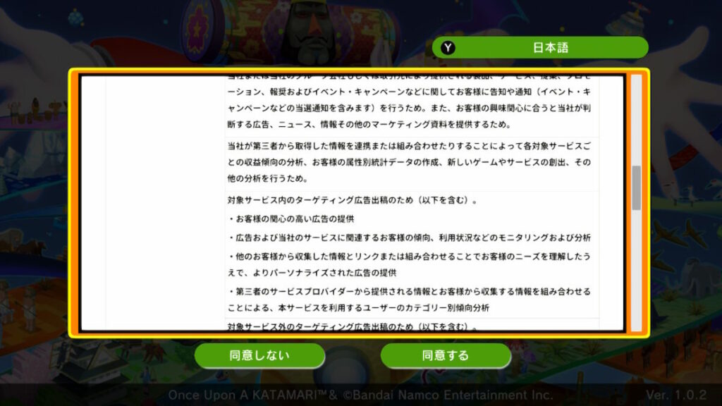 起動時にしっかりと規約に同意させるスタイル。バンナムらしいや。知らんけど。