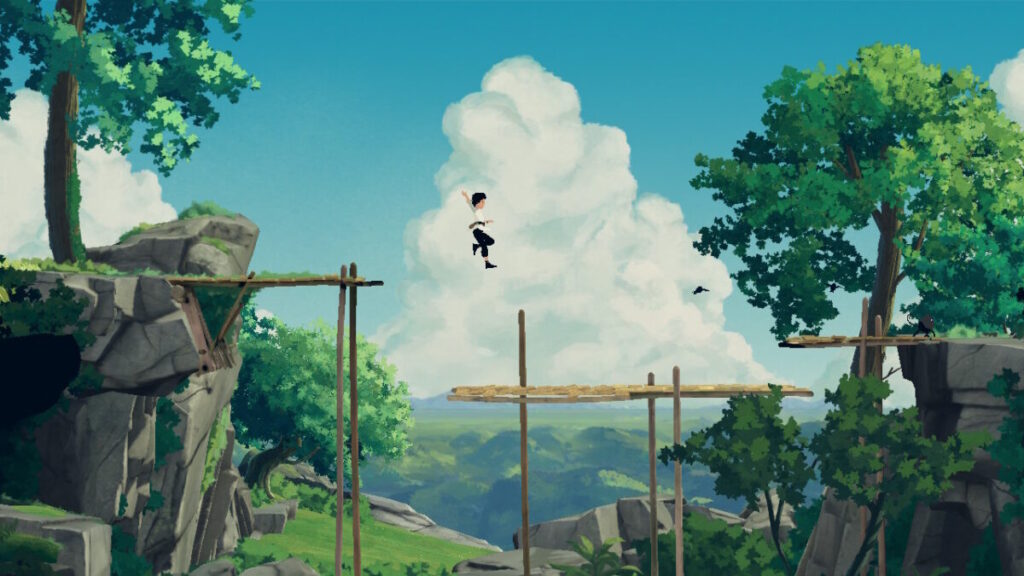 素朴に見えるラーナの身体能力はかなりのもので、崖やロープをよじ登ったり、そこそこ高いところから落ちてもへっちゃら。それぞれの動作に繊細なリアクションがついていて、それが体感値をさらに高めています。感激するほど丁寧。