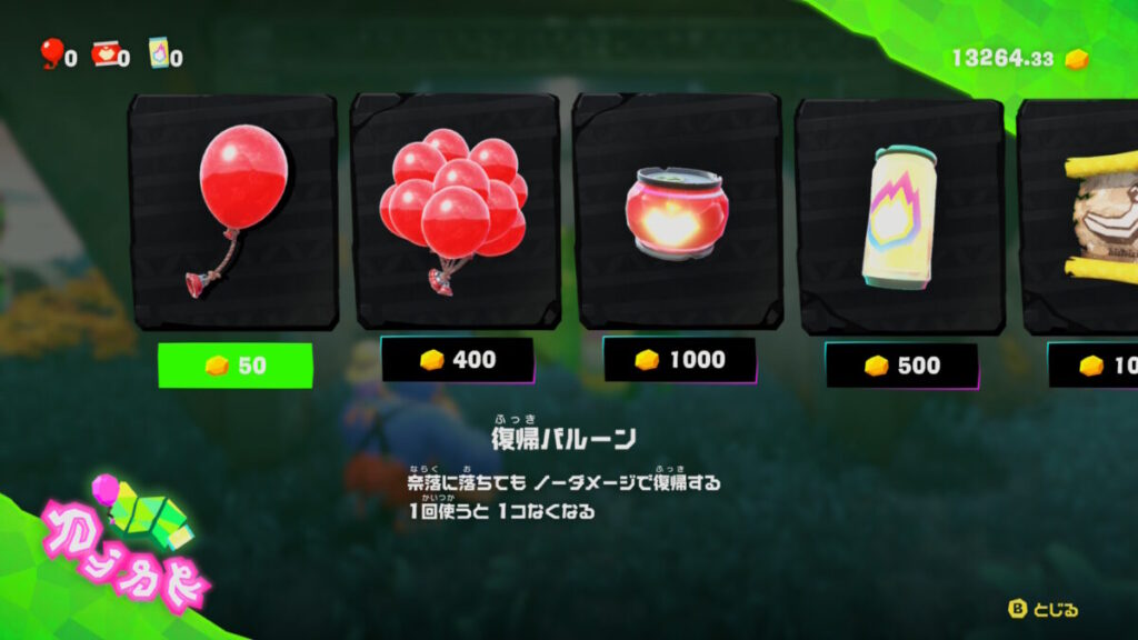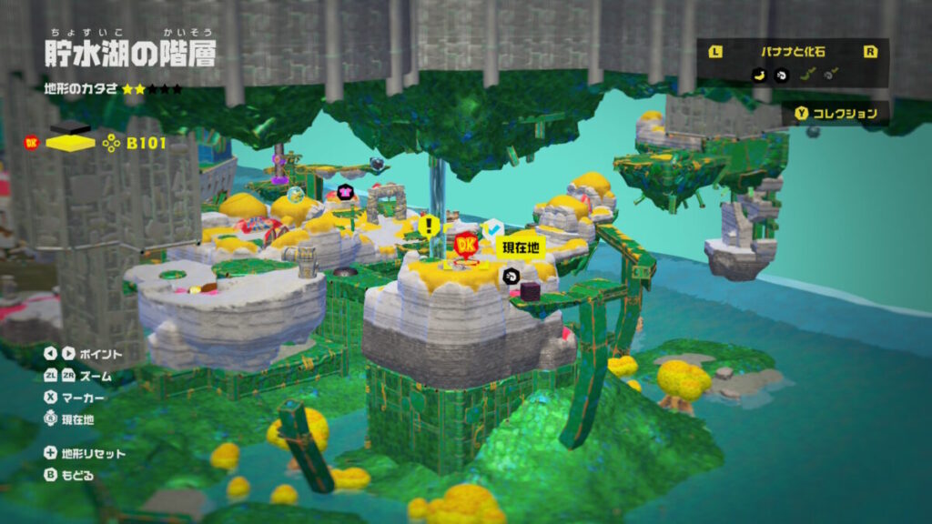 ドンキーのパワーアップ要素など。アイテム収集はおおかたパワーアップをし終えてから取り組んだほうが捗りそう。わかっていても寄り道しちゃうんですけど。