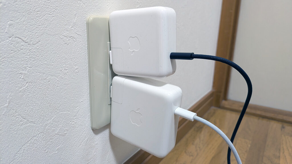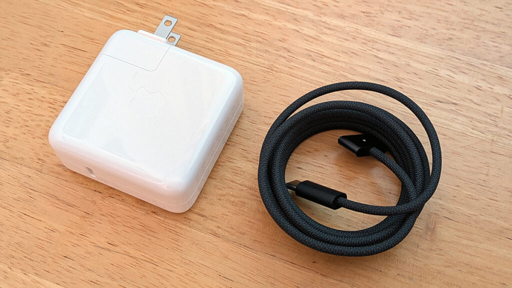 なお公式ストアで購入すると、アダプターの電力を70Wと96Wから選べます。自分は70Wを選びました。M1に付属していた96Wのアダプターと比べるとちょっと小さい。高出力モードを使う方や、少しでも早く充電したい方は96Wを選びましょう。