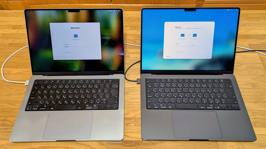 移行は非常に簡単でした。色はスペースブラック。並べてみると黒く見えますが、実際は濃いグレーです。おじさんのパソコンって感じ。