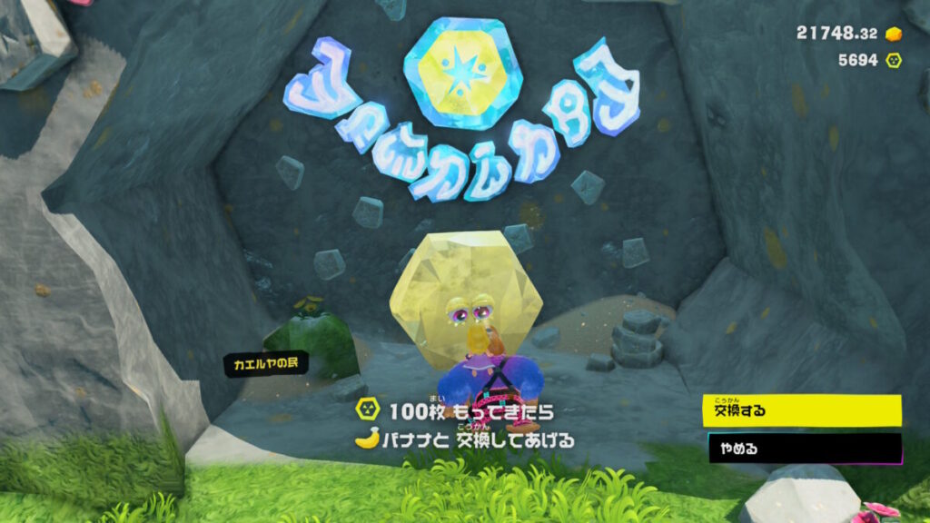 ついでに耳寄り情報なんですけど、バナモンドをコンプリートするには各地のバナチップ交換所で必ず1回は交換してください。わからなくて攻略サイトを見たから自信あります。