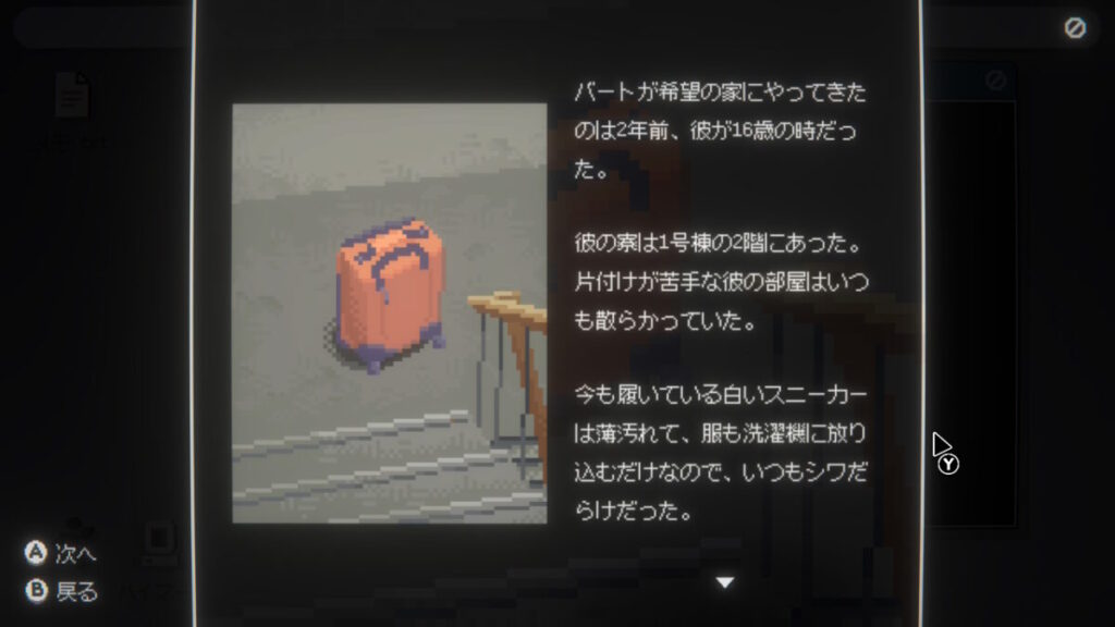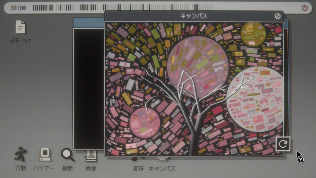 マップ上のオブジェを選択すると「肖像」と呼ばれる記憶の断片が回収されます。